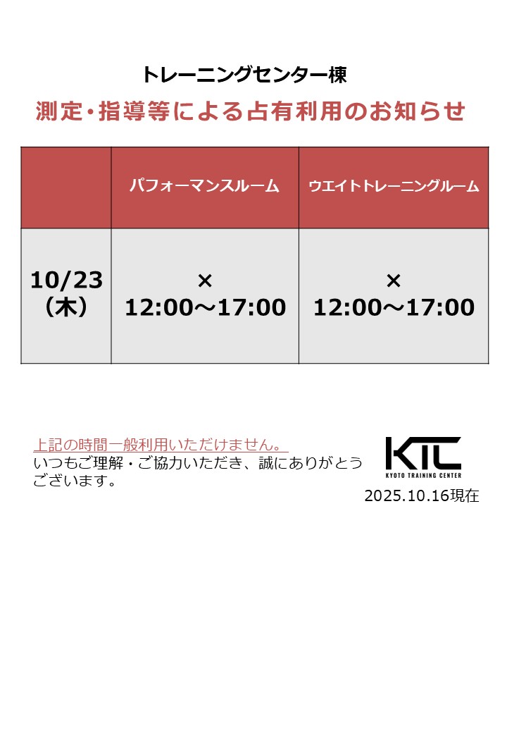 当ホームページ、Facebook、Twitter、京都トレーニングセンター内の掲示等にてご案内致します。